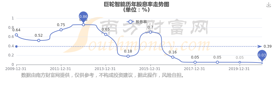 巨輪智能歷年股息率走勢(shì)如下圖: