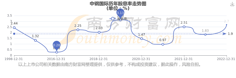 近年中鋼國(guó)際年度股息率走勢(shì)如下圖: