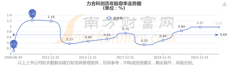 近年力合科創(chuàng)年度股息率走勢(shì)如下圖:
