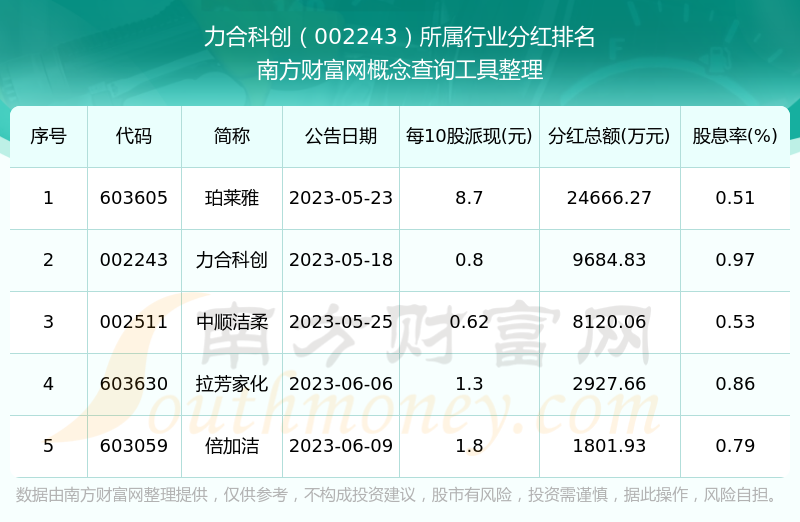 二、力合科創(chuàng)002243行業(yè)分紅排名