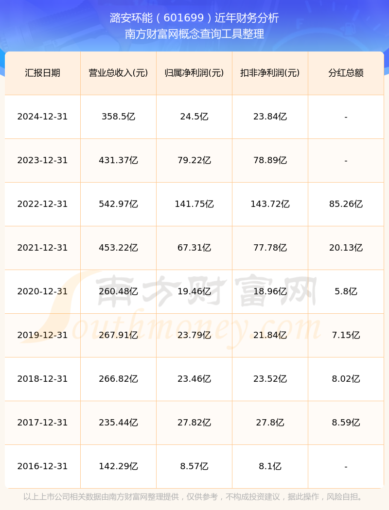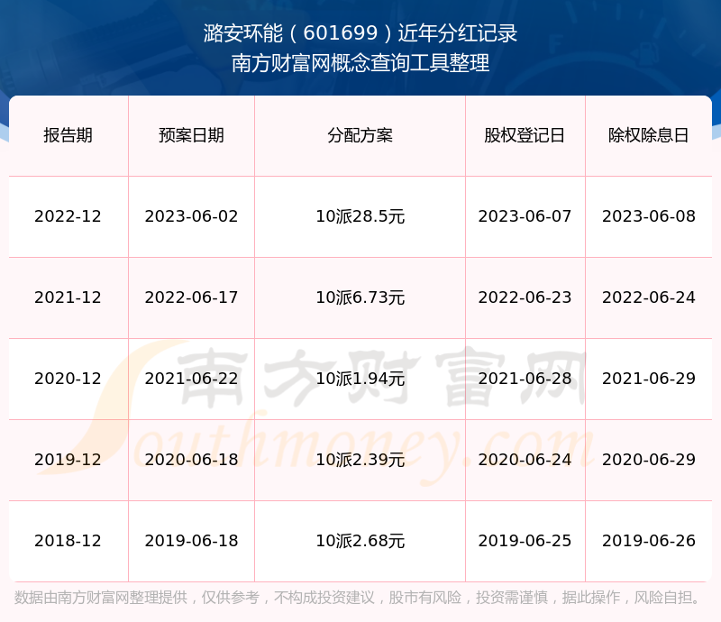潞安環(huán)能歷年分紅派息情況如下表所示: