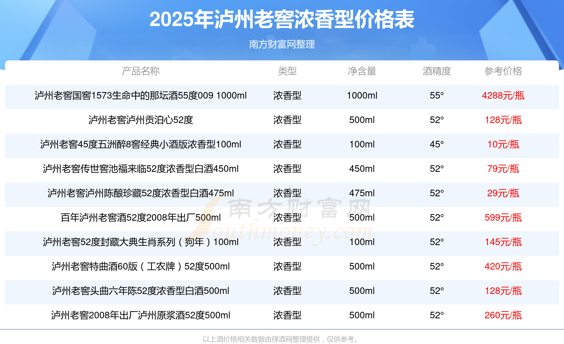 瀘州老窖濃香型酒最新價(jià)格2025: