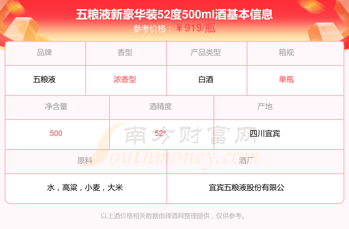 五糧液新豪華裝52度500ml基本信息