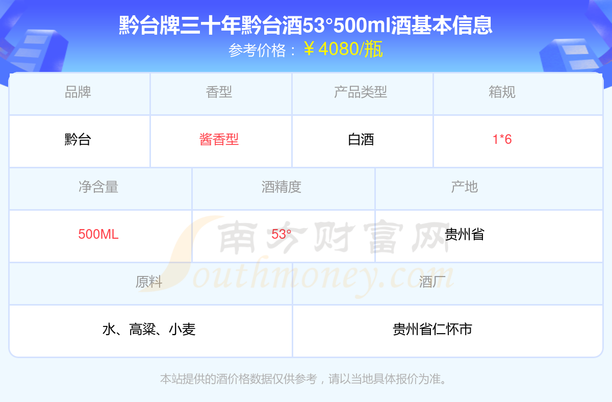 黔臺牌三十年黔臺酒53°500ml基本信息