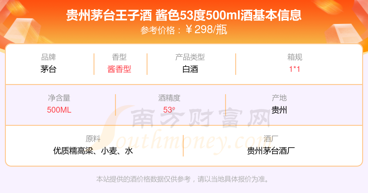 貴州茅臺(tái)王子酒 醬色53度500ml基本信息