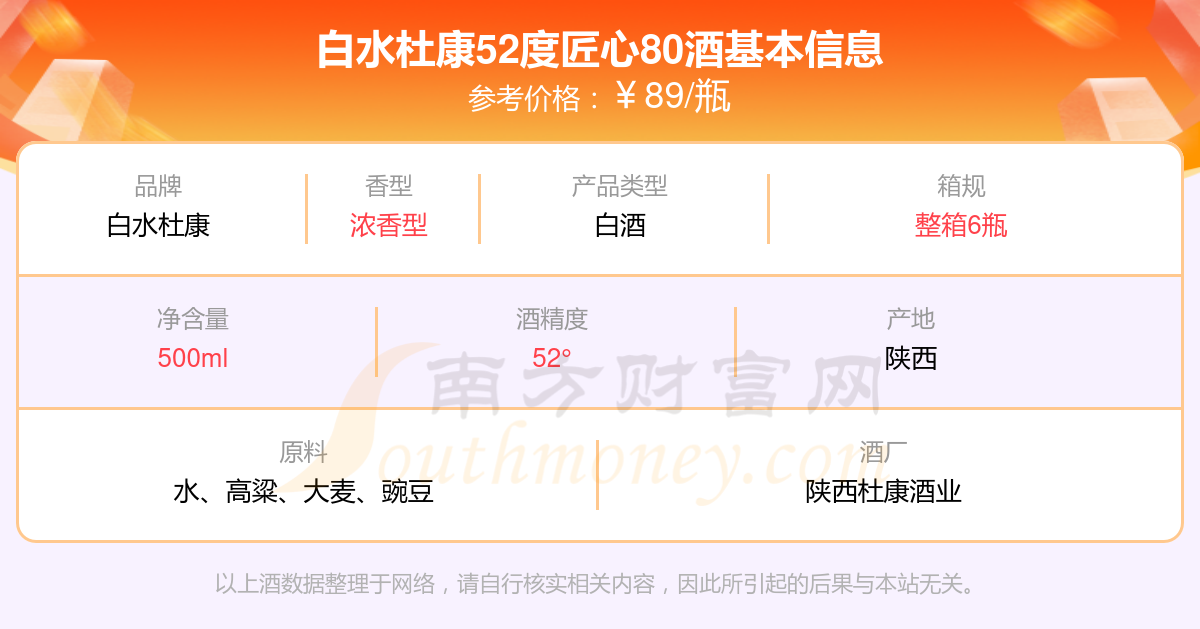 白水杜康52度匠心80基本信息