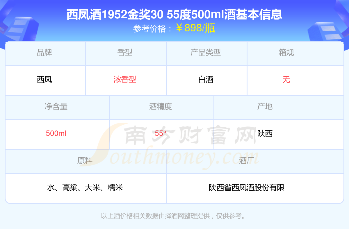 西鳳酒1952金獎(jiǎng)30 55度500ml基本信息