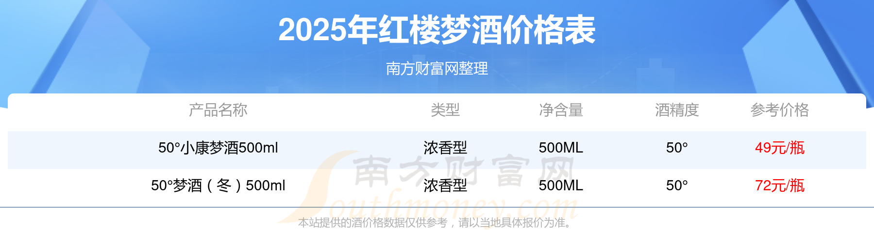 2025紅樓夢酒最新價(jià)格:50°夢酒(冬)500ml參考價(jià)72元/瓶、50°小康夢酒500ml參考價(jià)49元/瓶。
