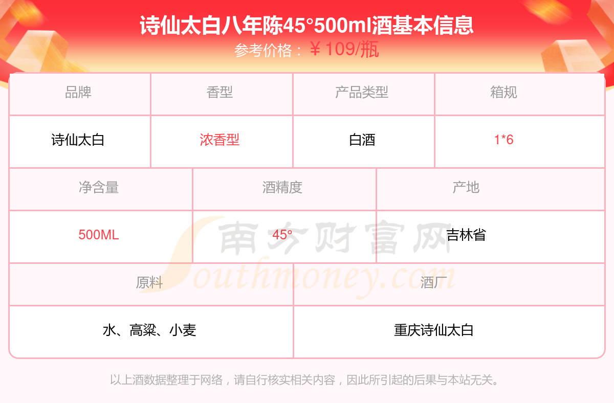 詩仙太白八年陳45°500ml基本信息