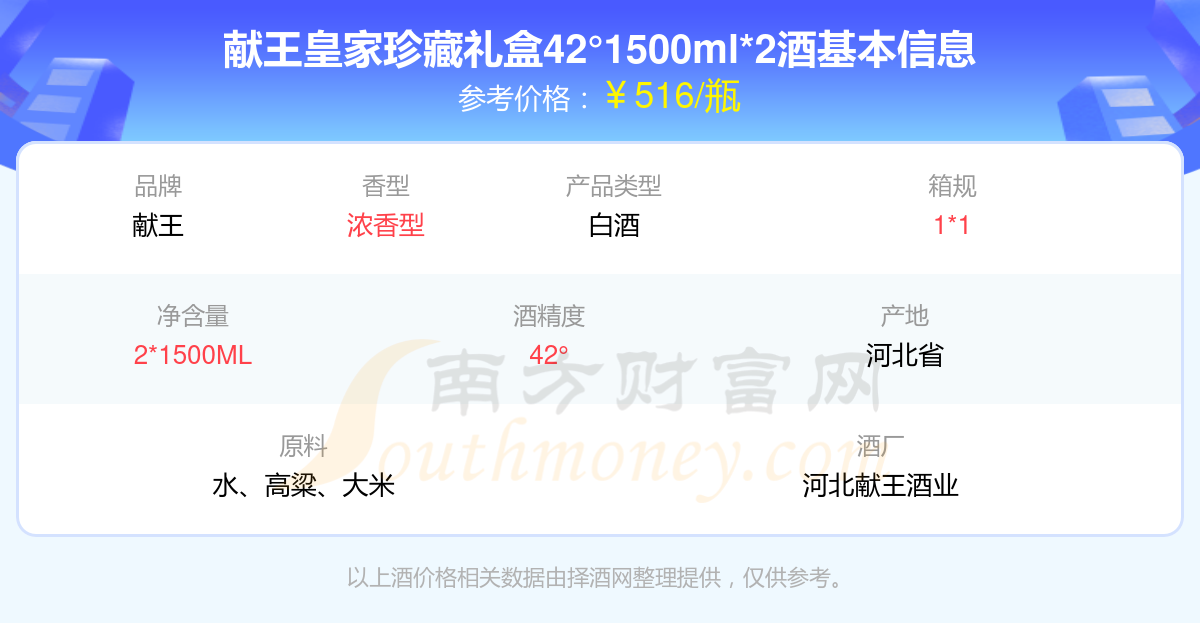 獻(xiàn)王皇家珍藏禮盒42°1500ml*2基本信息