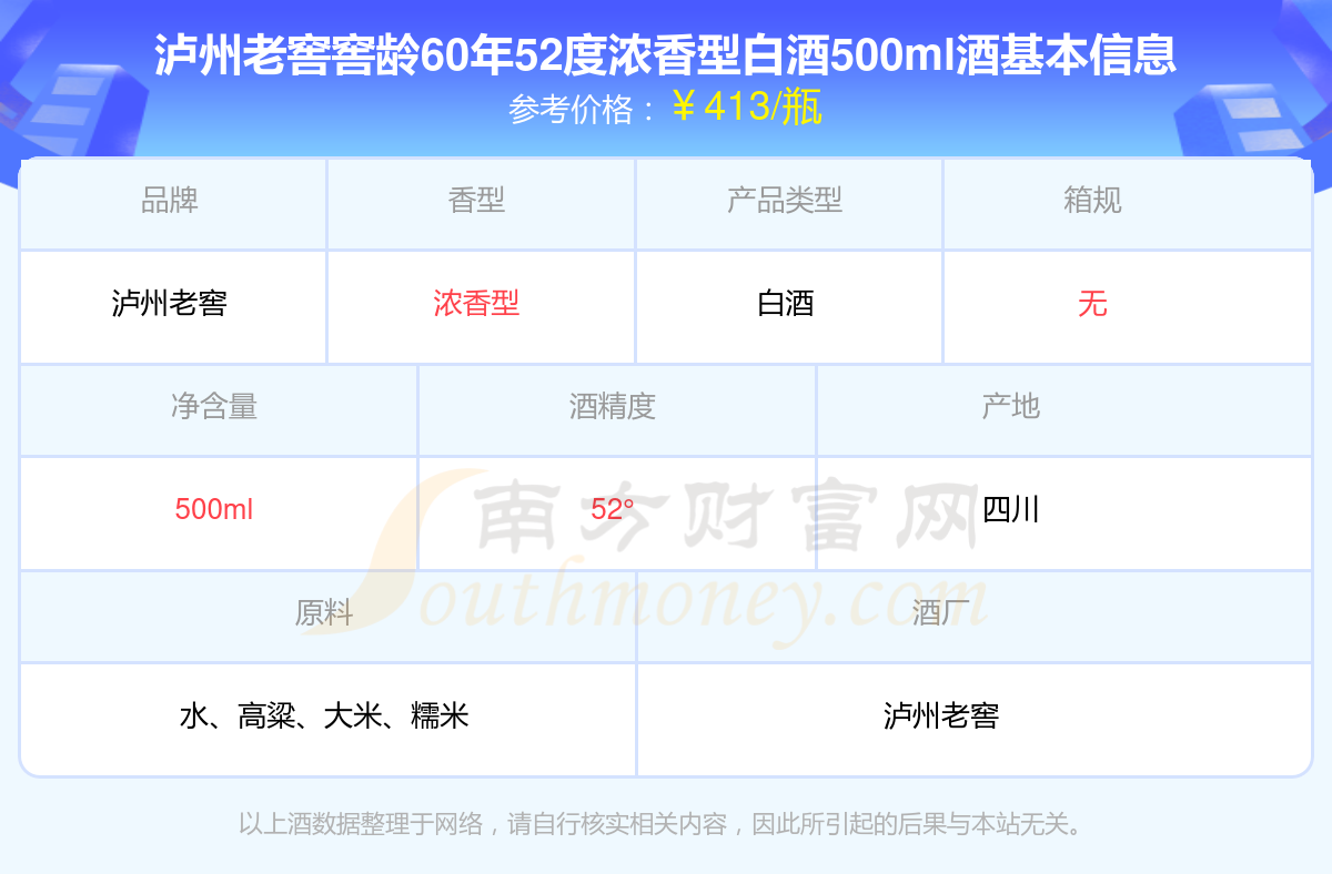 瀘州老窖窖齡60年52度濃香型白酒500ml基本信息