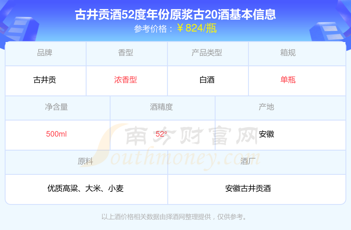 古井貢酒52度年份原漿古20基本信息
