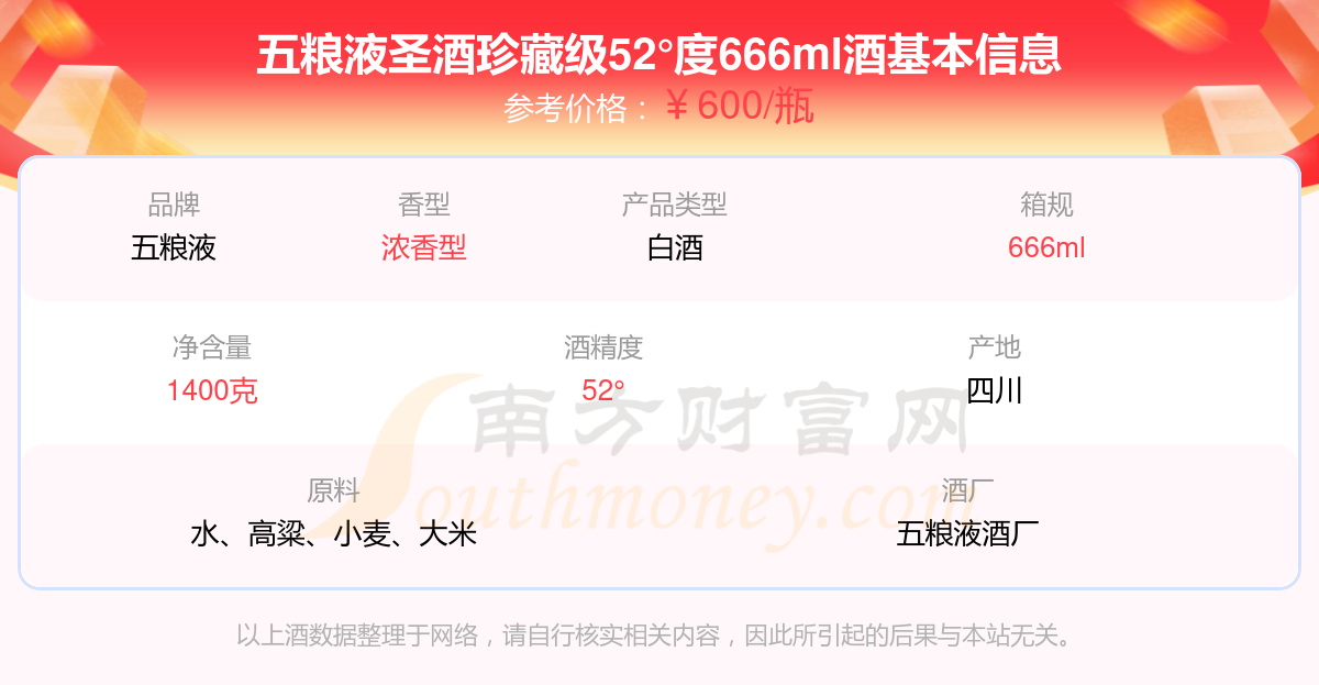 五糧液圣酒珍藏級(jí)52°度666ml基本信息
