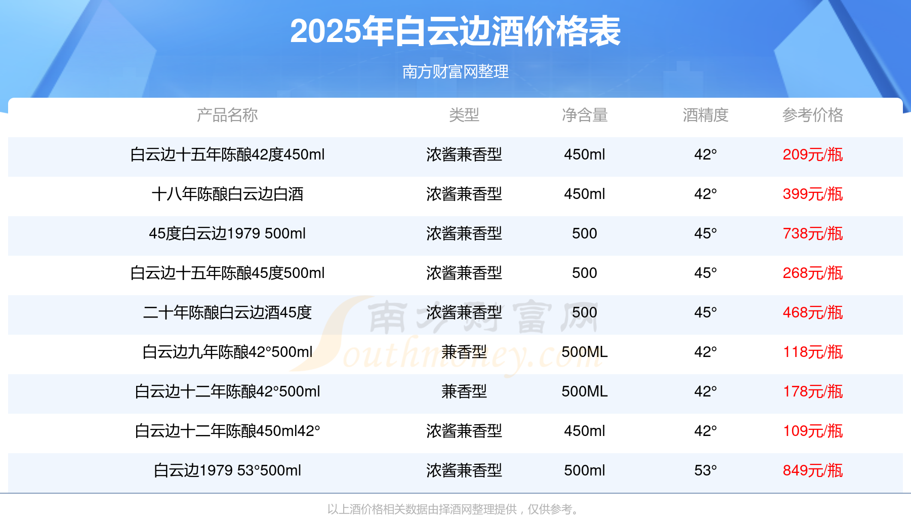本站提供的酒價(jià)格數(shù)據(jù)僅供參考,請(qǐng)以當(dāng)?shù)鼐唧w報(bào)價(jià)為準(zhǔn)。