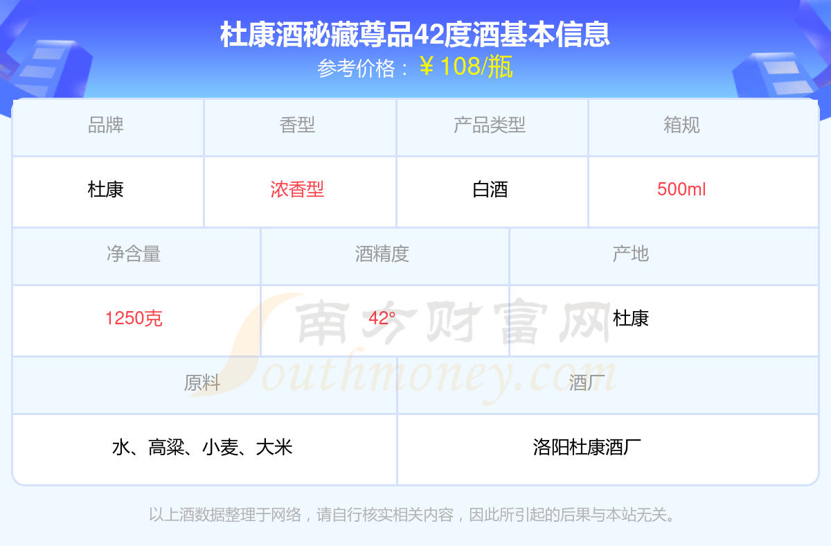 杜康酒秘藏尊品42度基本信息