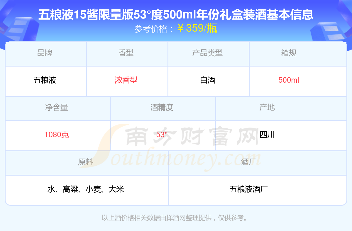 五糧液15醬限量版53°度500ml年份禮盒裝基本信息