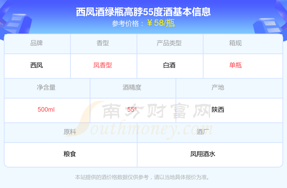 西鳳酒綠瓶高脖55度基本信息