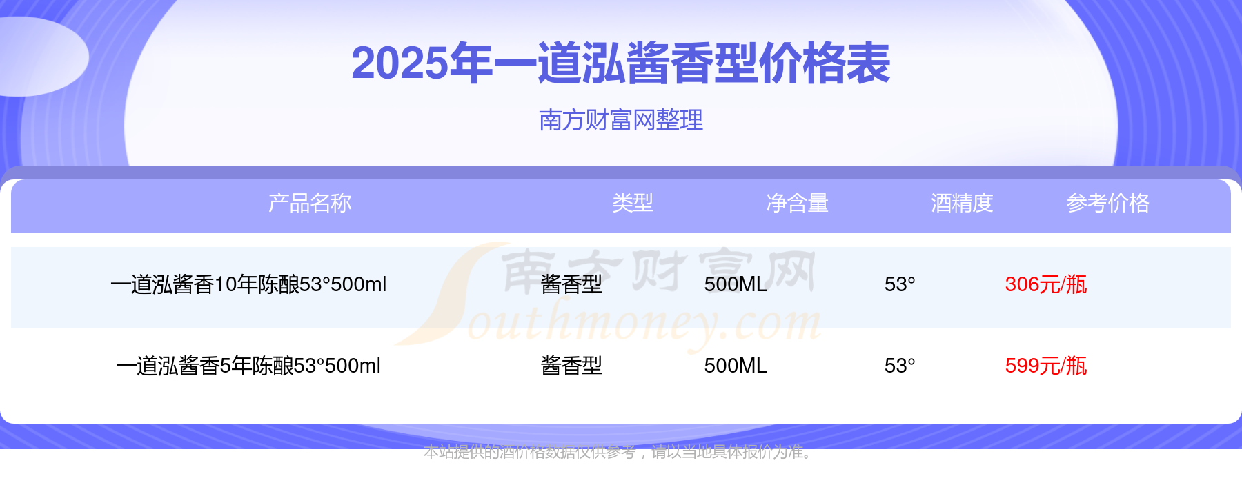 2025年一道泓醬香型酒一道泓醬香5年陳釀53°500ml、一道泓醬香10年陳釀53°500ml等最新價(jià)格如下: