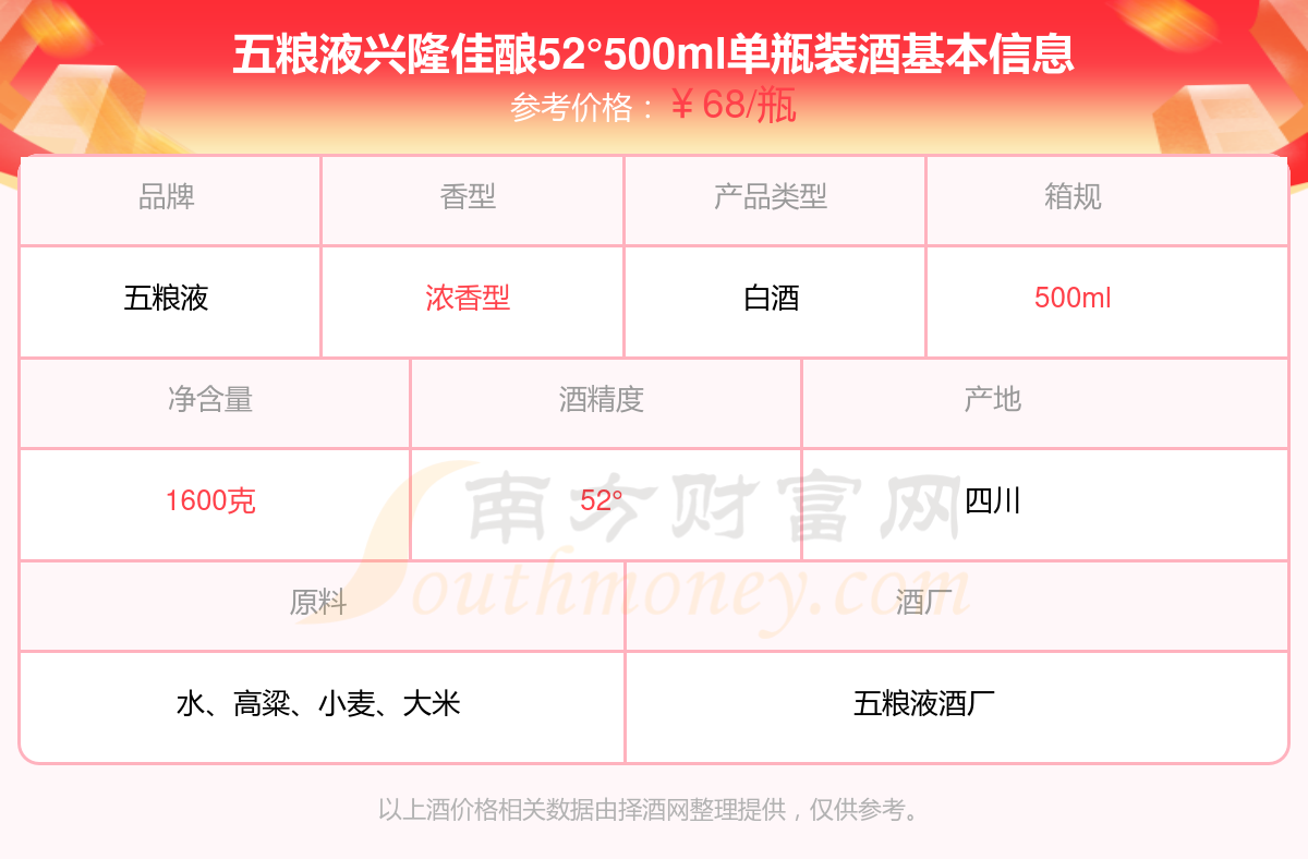 五糧液興隆佳釀52°500ml單瓶裝基本信息