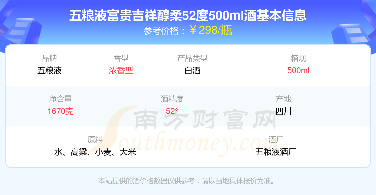 五糧液富貴吉祥醇柔52度500ml基本信息