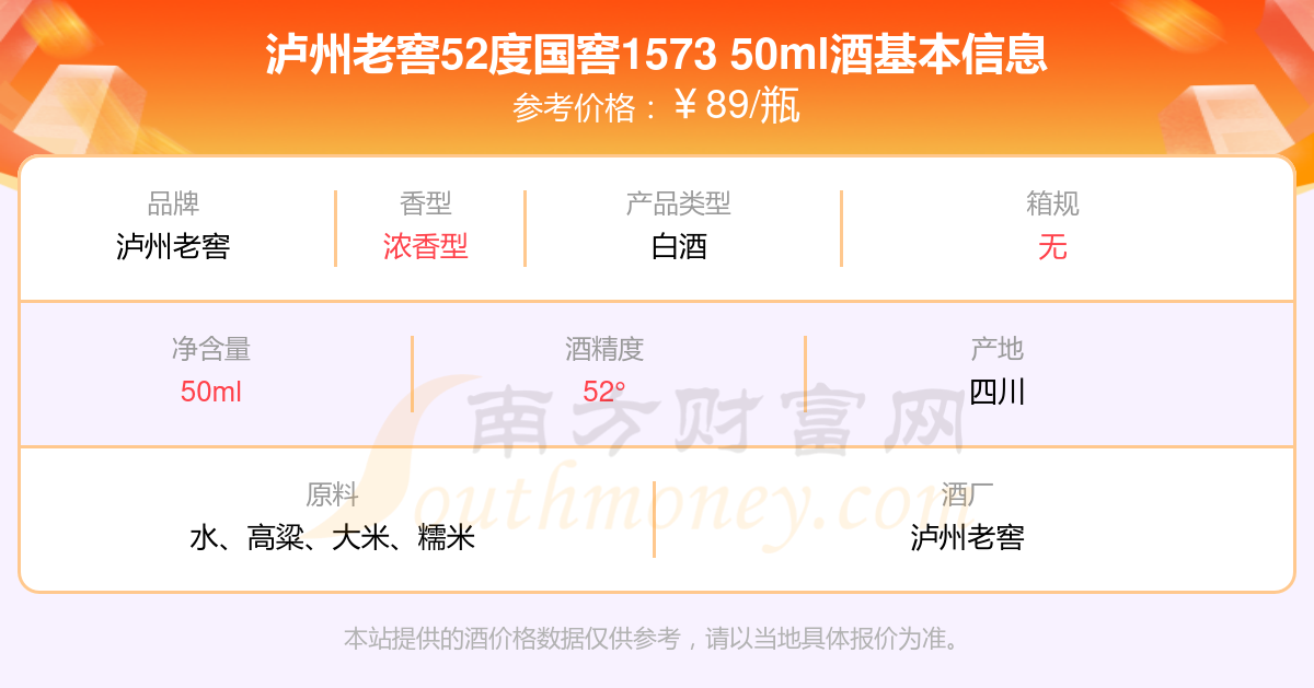 瀘州老窖52度國(guó)窖1573 50ml基本信息