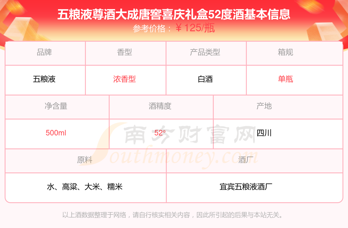 五糧液尊酒大成唐窖喜慶禮盒52度基本信息