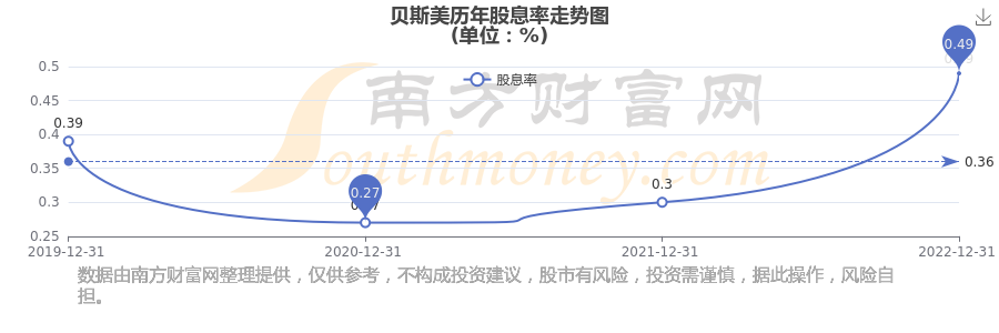 近年貝斯美年度股息率走勢(shì)如下圖: