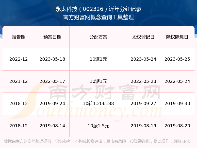 永太科技最新一次公布的分紅方案為10派1元。本次權(quán)益分派股權(quán)登記日為2023年5月24日,除權(quán)除息日為2023年5月25日,派息日為2023年5月25日。