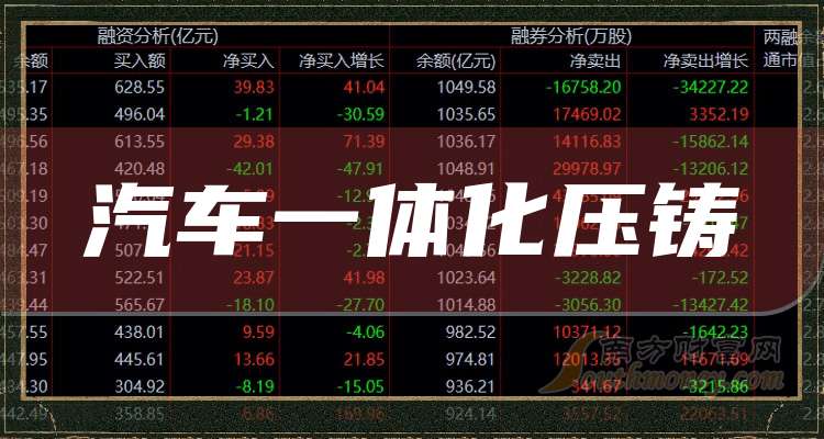 汽車(chē)一體化壓鑄龍頭有哪些?據(jù)南方財(cái)富網(wǎng)概念查詢工具數(shù)據(jù)顯示,汽車(chē)一體化壓鑄龍頭有: