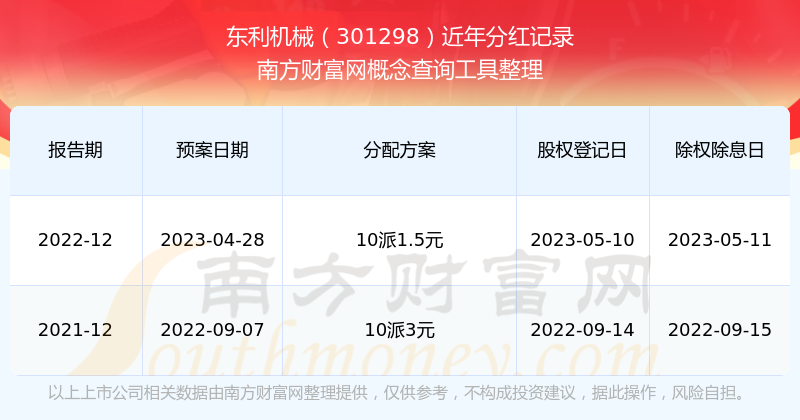 東利機(jī)械最新一次公布的分紅方案:10派1.5元。