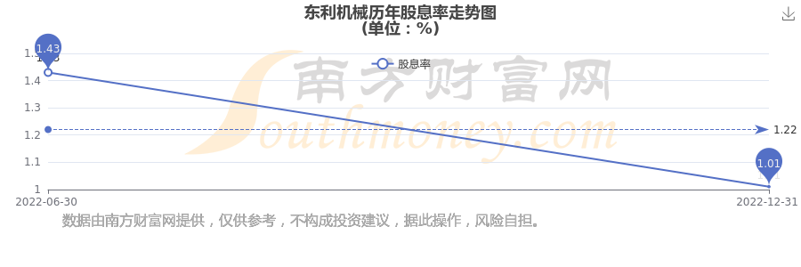 近年?yáng)|利機(jī)械年度股息率走勢(shì)如下圖: