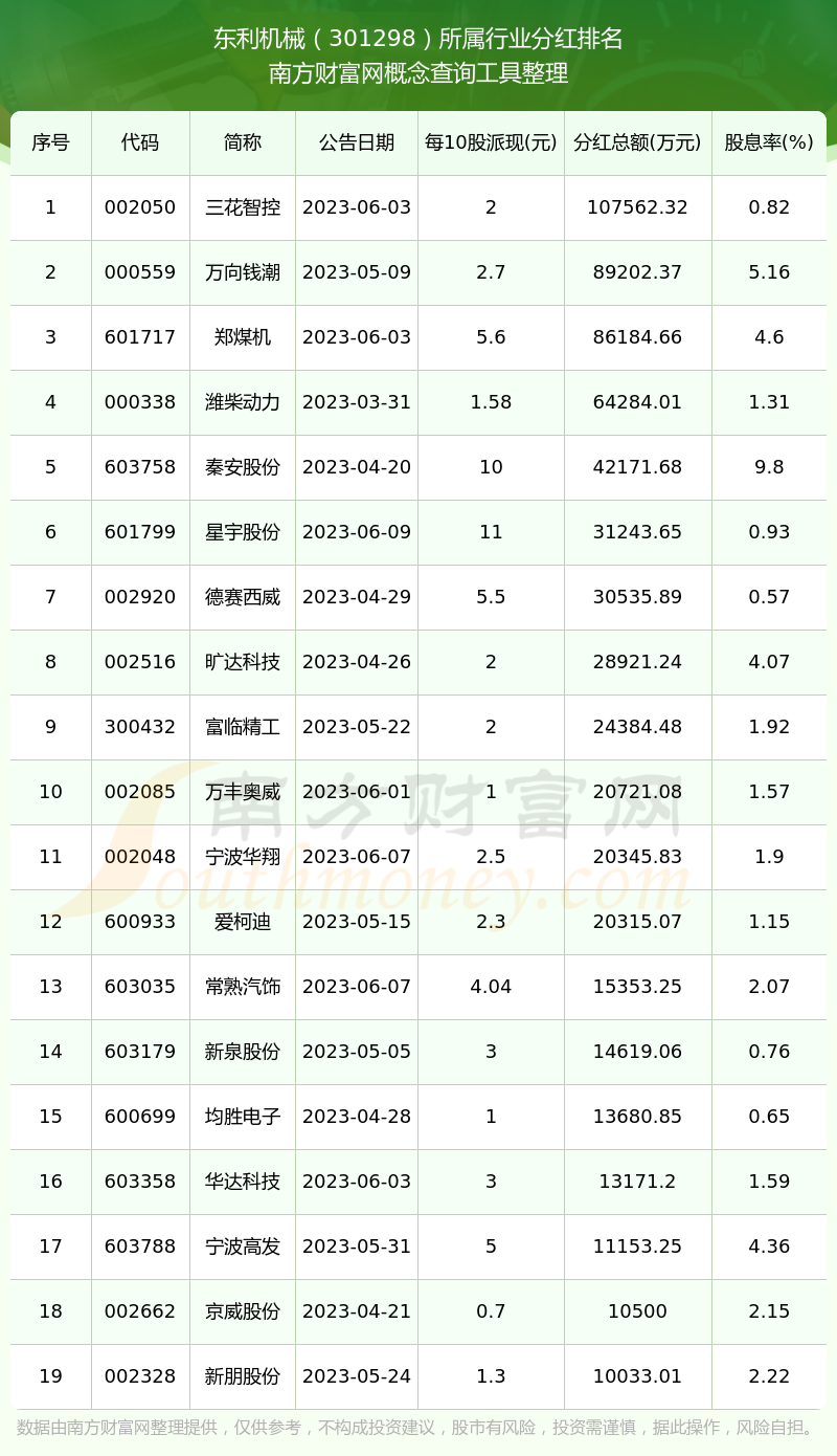 按照南方財(cái)富網(wǎng)趨勢(shì)選股系統(tǒng)統(tǒng)計(jì),東利機(jī)械所屬行業(yè)為汽車零部件行業(yè),汽車零部件行業(yè)分紅排名情況如下表: