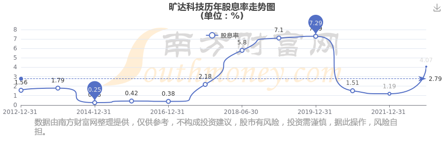 近年曠達(dá)科技年度股息率走勢(shì)如下圖: