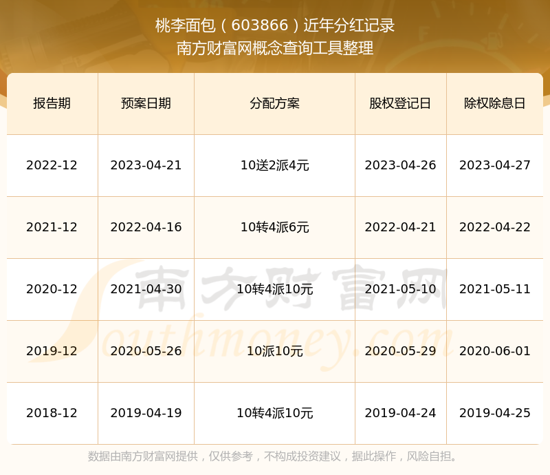 近年桃李面包分紅派息情況如下表所示: