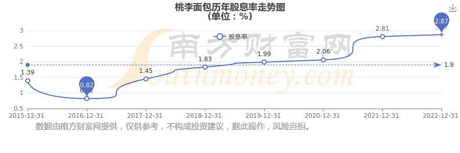 桃李面包歷年股息率走勢如下圖: