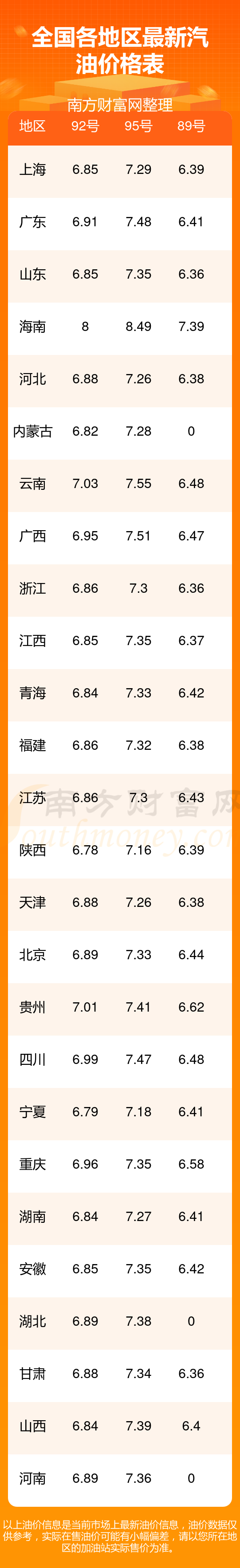 油價(jià)數(shù)據(jù)僅供參考,請以您所在地區(qū)的各加油站報(bào)價(jià)為準(zhǔn)。