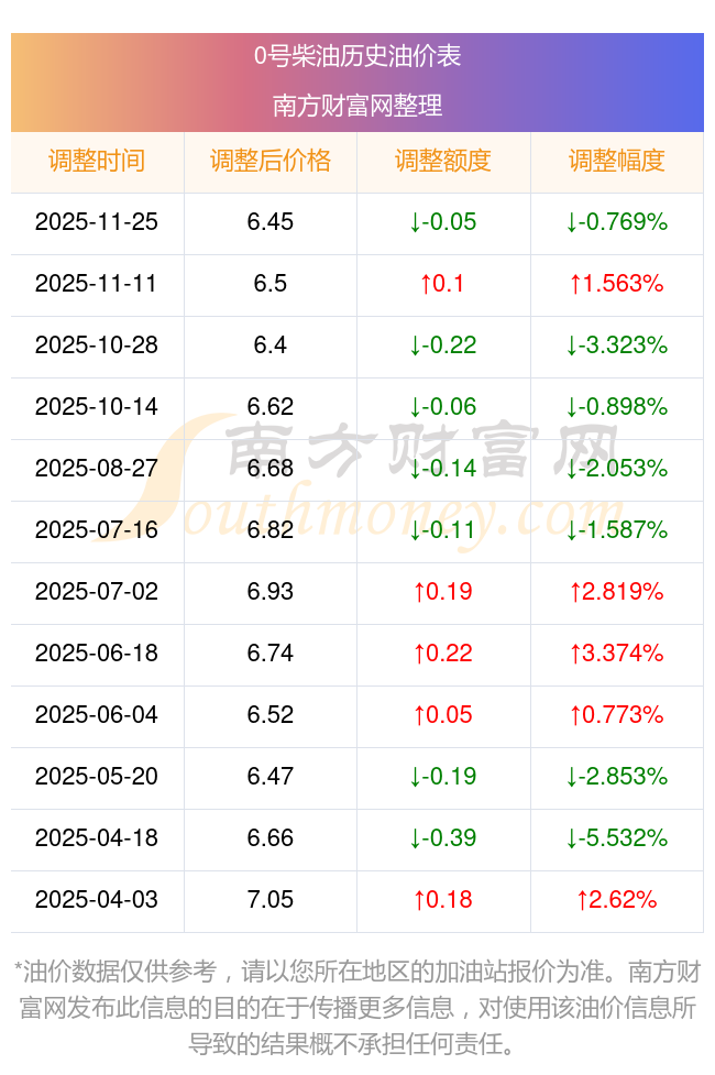 2025年油價(jià)調(diào)整時(shí)間及價(jià)格一覽表