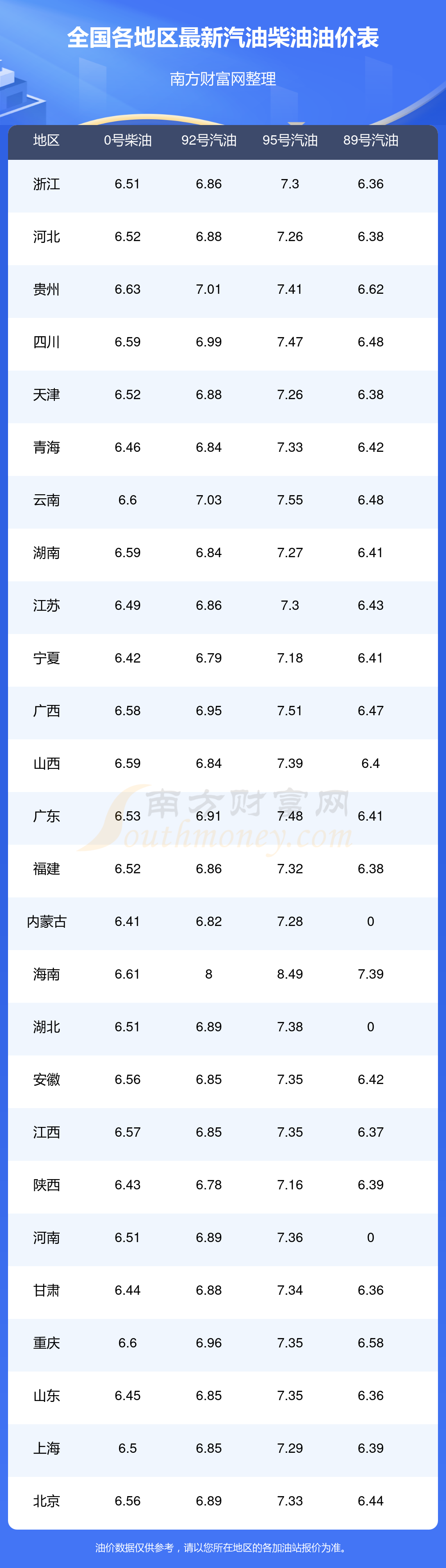 2025年全國(guó)各地區(qū)最新油價(jià)表