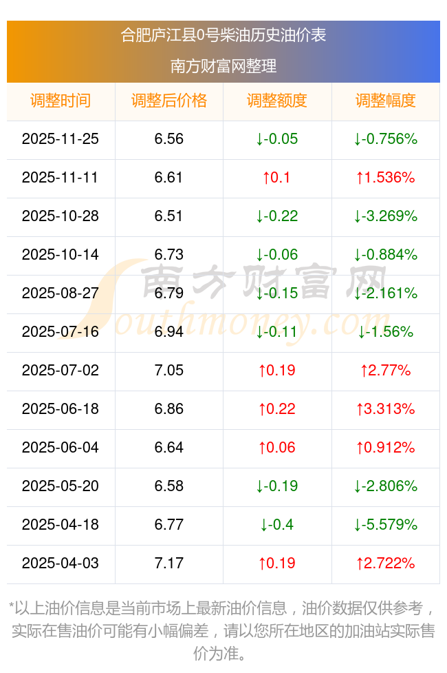 12月2日合肥廬江縣0號(hào)柴油歷史油價(jià)一覽表