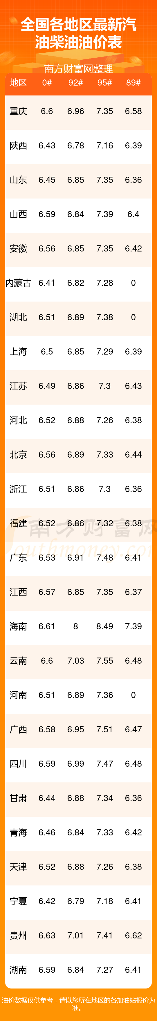 2025年12月2日全國各地油價(jià)調(diào)整及最新汽油價(jià)格表