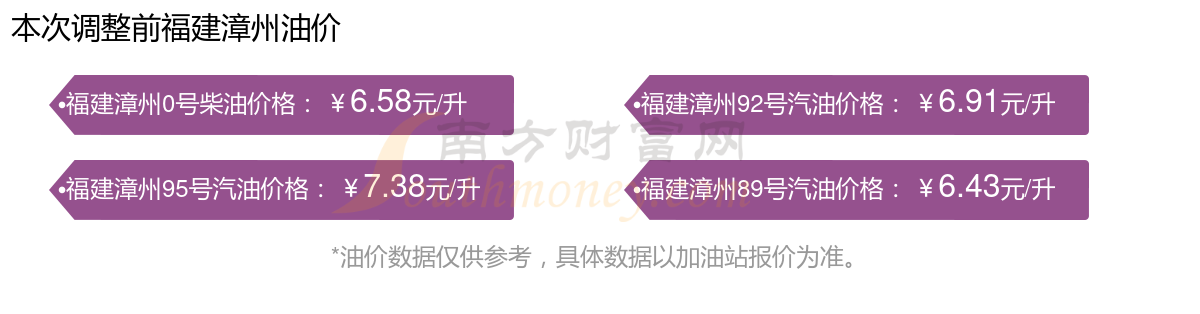 以上數(shù)據(jù)僅供參考,請以您所在地區(qū)的加油站實(shí)際售價(jià)為準(zhǔn)。南方財(cái)富網(wǎng)發(fā)布此信息的目的在于傳播更多信息,對使用該油價(jià)信息所導(dǎo)致的結(jié)果概不承擔(dān)責(zé)任。