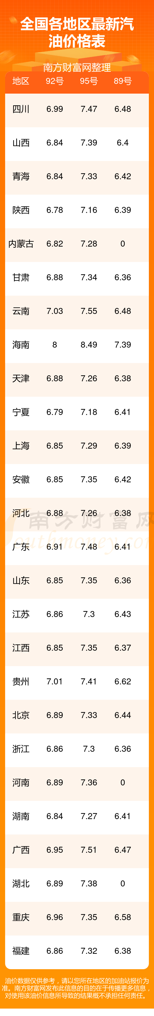 全國(guó)92號(hào)汽油平均價(jià)格為:7元每升,其中,最低為陜西,價(jià)格6.78元/升,最高為海南,價(jià)格8.00元/升。