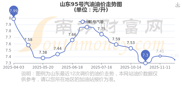 12月2日,山東95號汽油的價(jià)格是7.35元每升,本次的調(diào)整時(shí)間為11月25日,對比上次的調(diào)整降了0.06元,降0.81%,12月8日24時(shí)為下一輪油價(jià)調(diào)整時(shí)間,還有6.13天。