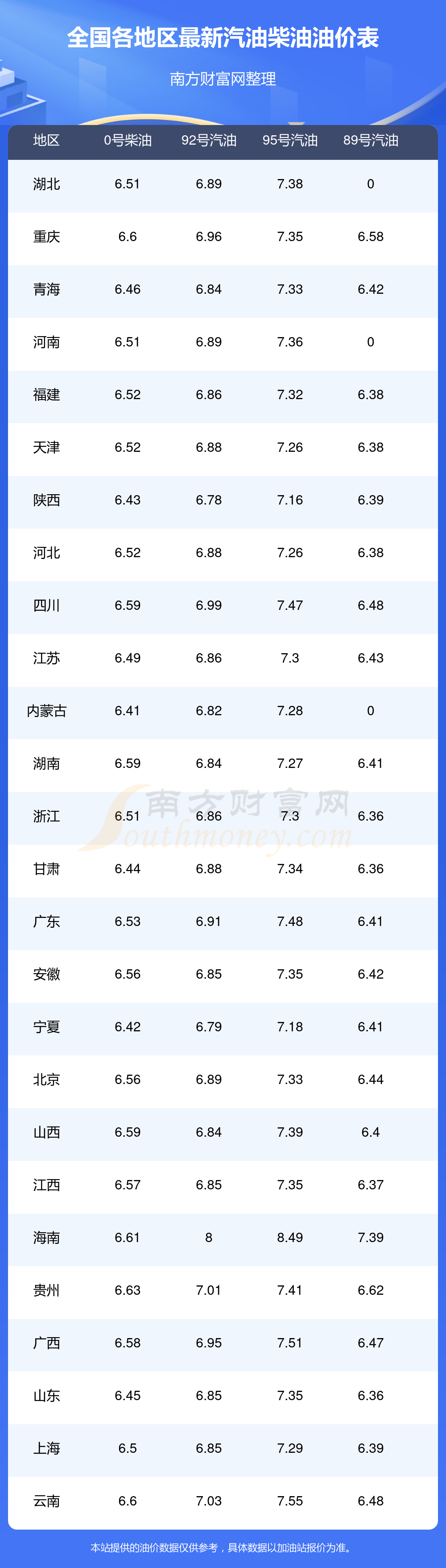 本站提供的油價(jià)數(shù)據(jù)僅供參考,具體數(shù)據(jù)以加油站報(bào)價(jià)為準(zhǔn)。