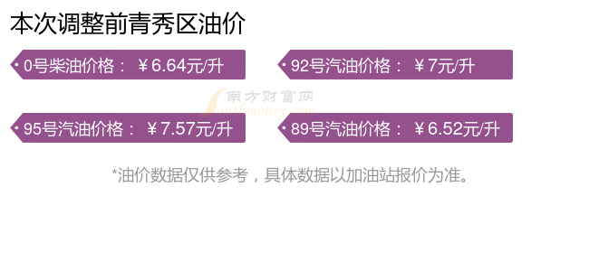 青秀區(qū)汽油、柴油12月2日每升的價格為11月25日調(diào)整后的價格,具體油價為:92號汽油6.95元;95號汽油7.51元;89號汽油6.47元;0號柴油6.58元。