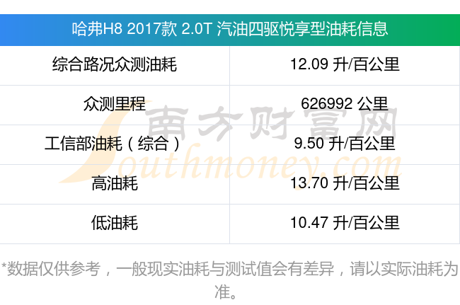 根據(jù)車主實(shí)測(cè)數(shù)據(jù),該車型低油耗為10.47L/100km,高油耗為13.70L/100km,綜合路況眾測(cè)油耗為12.09L/100km,工信部綜合油耗為9.50L/100km。