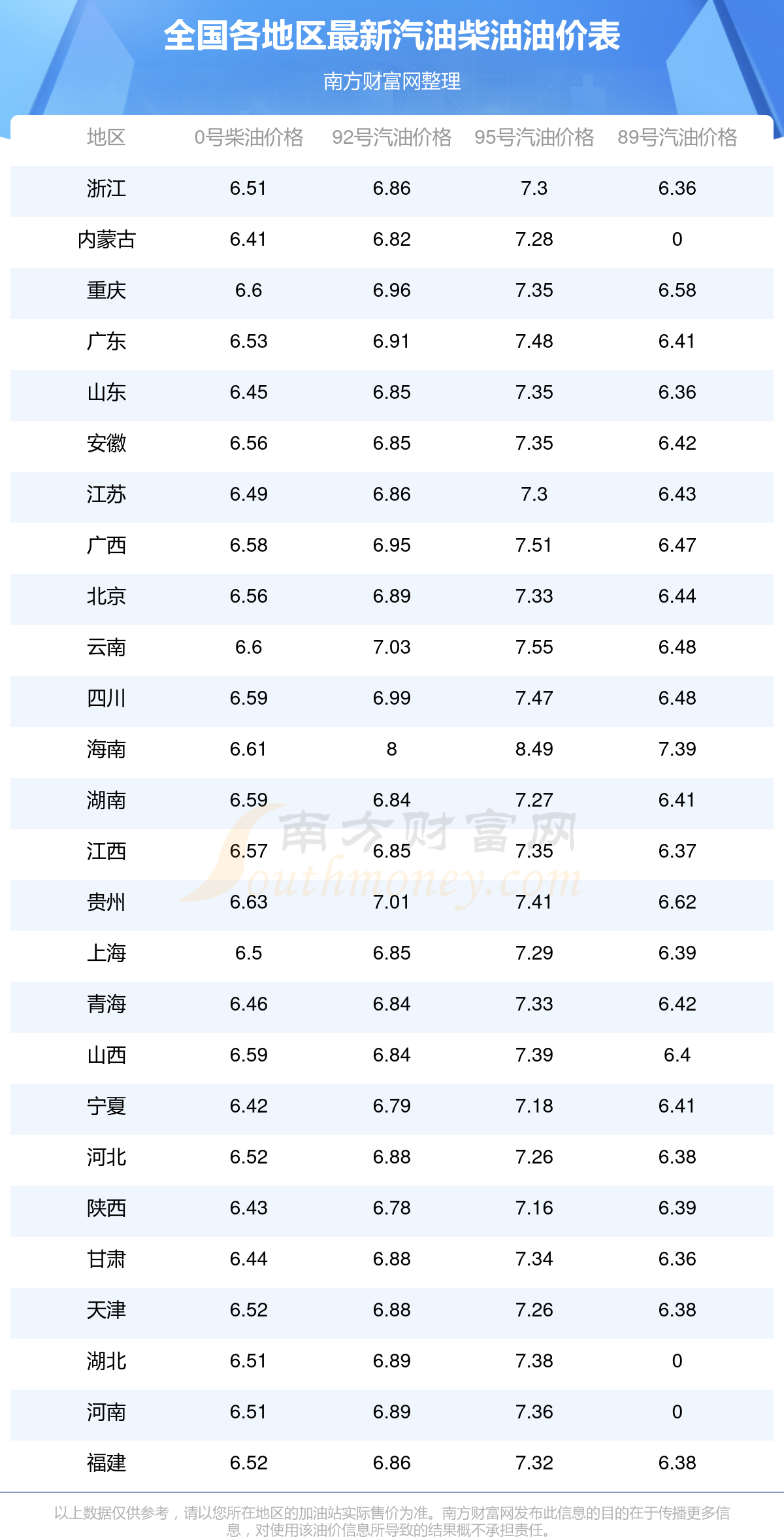 全國95號汽油最新平均價格為:7元每升,其中,最高為海南,價格為8.49元/升,最低為陜西,價格為7.16元/升。