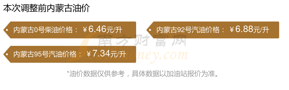 內(nèi)蒙古92號汽油油價調(diào)整表