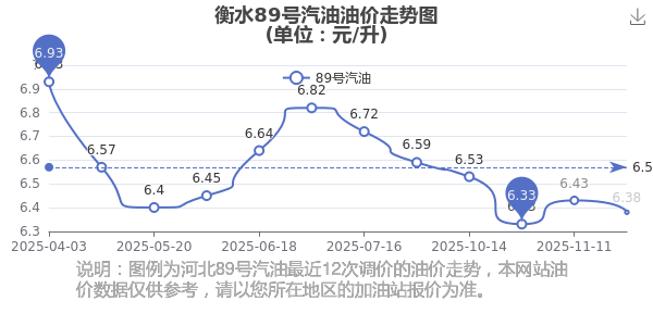 衡水汽油、柴油12月2日每升的價格是多少?具體為:92號汽油為6.88元,跌了0.05元;95號汽油為7.26元,跌了0.06元;89號汽油為6.38元,跌了0.05元;0號柴油為6.52元,跌了0.06元,本輪油價的調整時間為11月25日。衡水下一輪油價調整時間12月8日24時,距離現(xiàn)在還有6.09天。