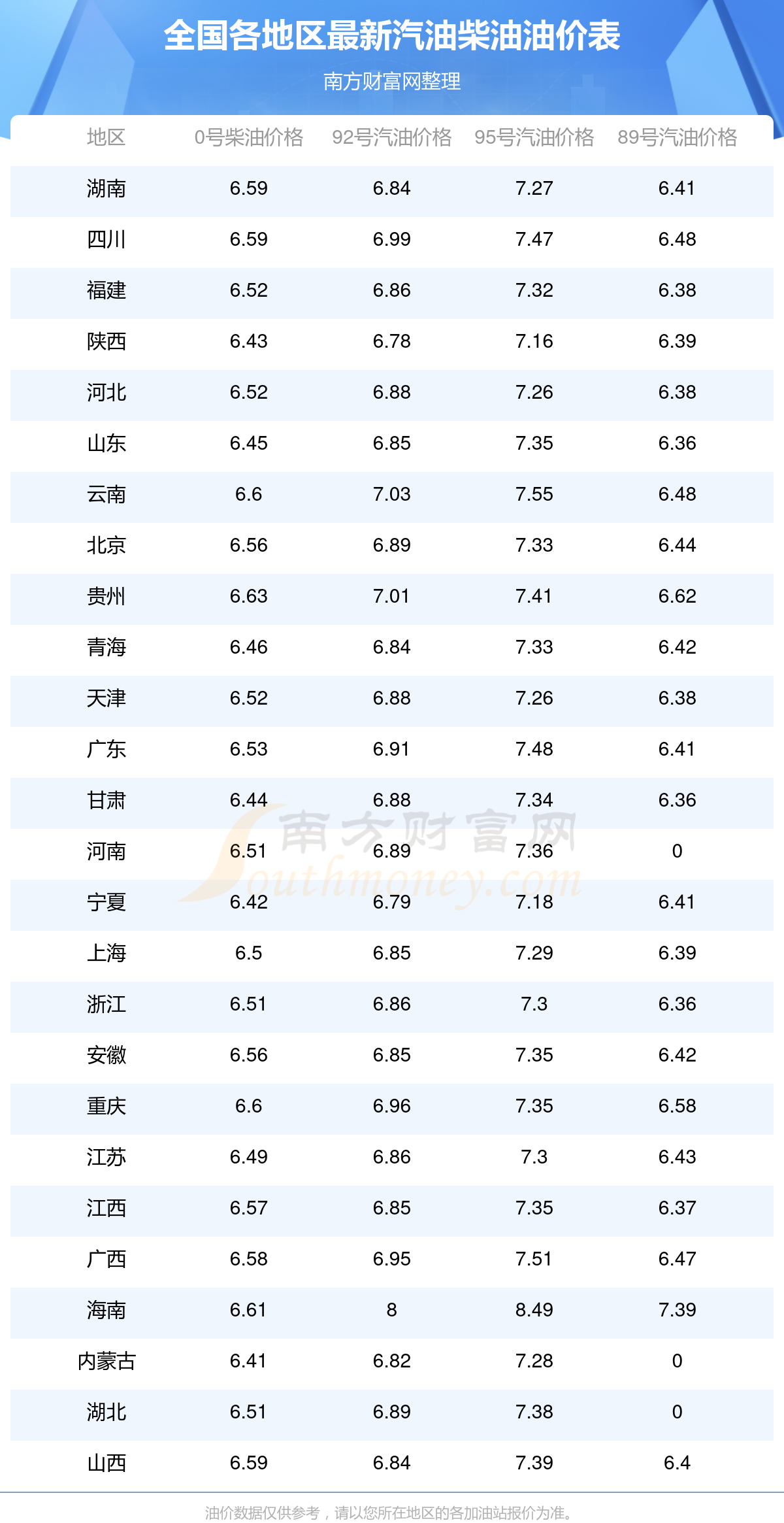 油價(jià)數(shù)據(jù)僅供參考,請(qǐng)以您所在地區(qū)的各加油站報(bào)價(jià)為準(zhǔn)。